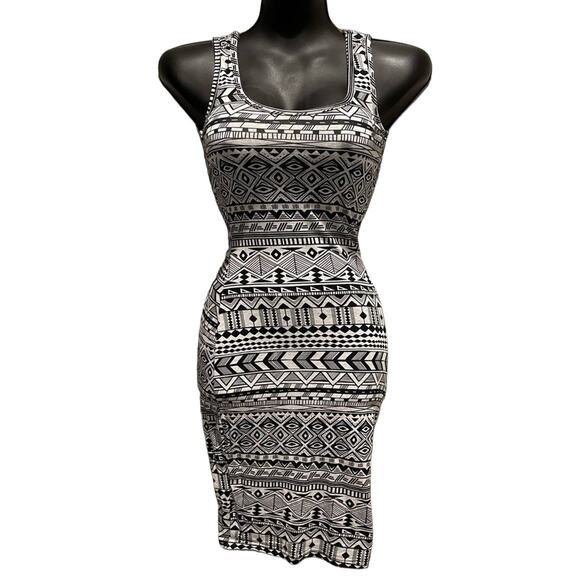Love Ari Bodycon Patterned Dress. Grey and Black.
