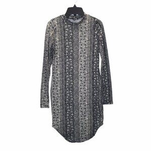 Love Cameron LA Dress Size Medium Black Floral Long Sleeve Stretch Mini Bodycon