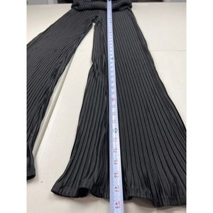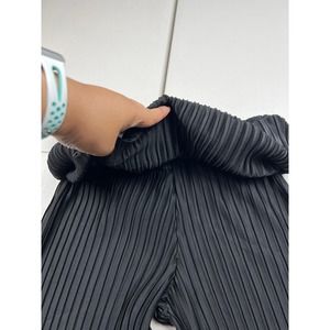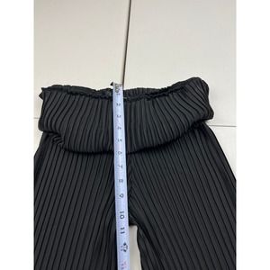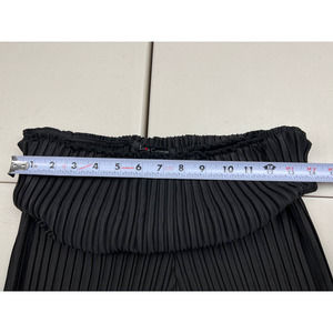 Love Cameron LA Los Angeles Women LARGE Black Pleated Stretch Flare Bottom Ruffle Wide Leg Pants Elastic Waist