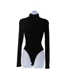 Love Cameron Teen Girls Black Turtleneck Open Front Bodysuit Size Small