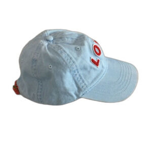 Love Cap Hat Women's Adjustable Light Blue and Red Raised Letters Distressed