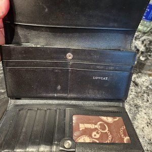 Love Cat Black Turnlock Shiny Leather Wallet with Silver Studs