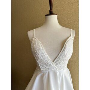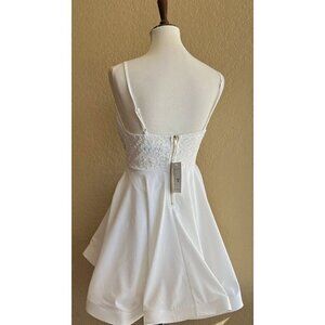 Love Cat Women's White Lace Plunging Skater Dress Size M