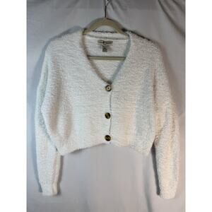 Love Change Italy Cropped Sweater Women's XS Ivory Button Cardigan Soft Cozy
