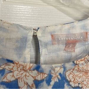 Love Colette Floral Print Blue Mini Cotton Dress, Button back closure, Lined,Approx measurements Pit to Pit 18”, Length 34.5”.NWOT