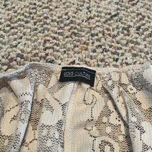 Width under arms 28, length from pit to hem 10.5. Not lined, except for breast, so can see skin through the lace.