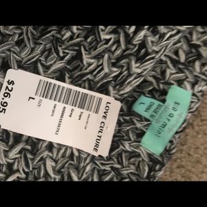 black, grey, and white Love Culture sweater. very warm and cozy on winter days. NWT.
