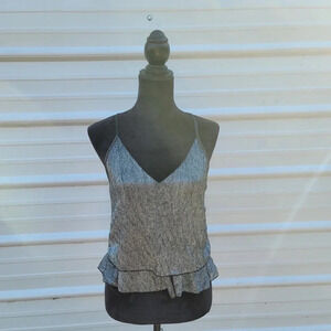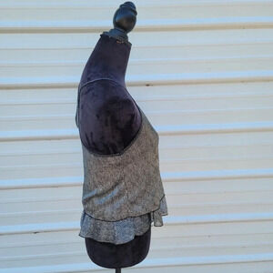 Love Culture Cropped Ruffle Silver Black Metallic Spaghetti Strap S Womens Top