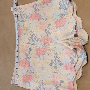 Love Culture Size S Pastel Floral Scalloped Trim Shorts, Side Zipper