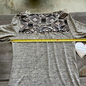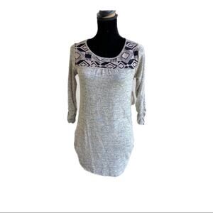 Love Delirious Womens Tunic Size M Beige Tan Black Embroidered Maternity Sweater