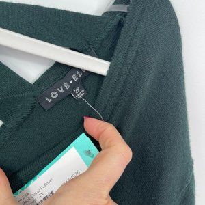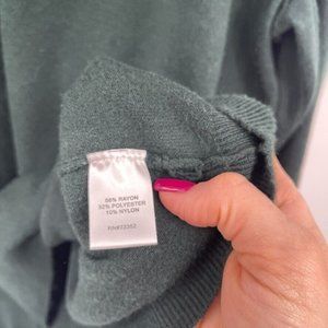 Elegant green V-neck sweater with a stylish back design. Perfect for any occasion.