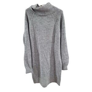 Love Ellie Gray Ribbed Knit Turtleneck Sweater Dress Cozy Hygge NEW