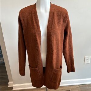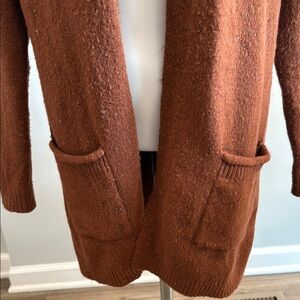 Stay cozy and stylish with this brown open front cardigan sweater. Perfect for layering, it features a classic design with convenient front pockets.
