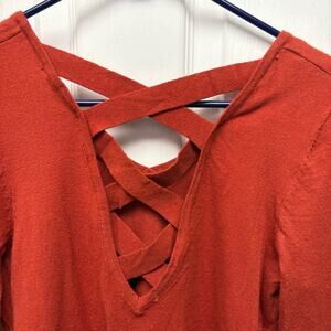 This Love Ellie pullover is a v neck. The rust colored sweater features cross cross straps in the back. This new without tags and a size extra small.