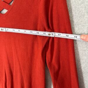 Love Ellie Sweater Womens Small Rust Burnt Criss Cross Back Thin V Neck Lightweight Corp Career Work Office Business Church Preppy Classic Casual Orange