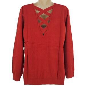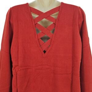 Love Ellie Womans size L Mia Back Detail Sweater Rust Brown Crisscross Back NEW