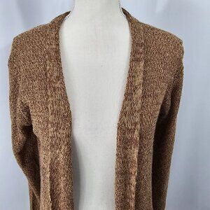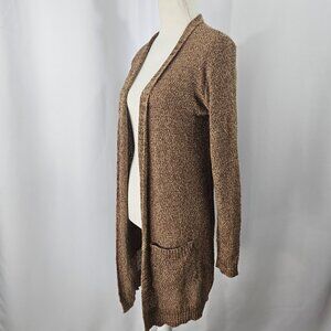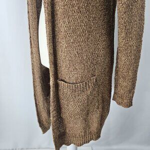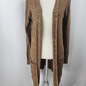 Love Ellie Women's Long Brown Open Front 2 Pocket Long Sleeve Cardigan Size M
