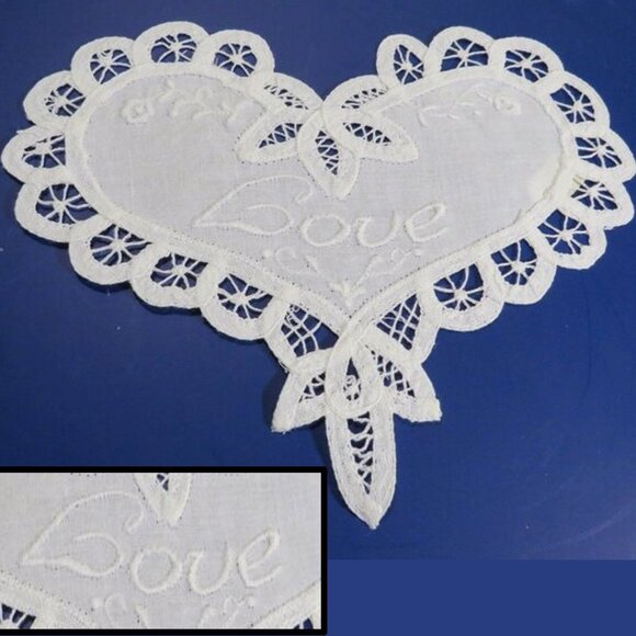 Love Embroidered Battenberg Lace Heart Dresser, Table, Wedding, Valentines