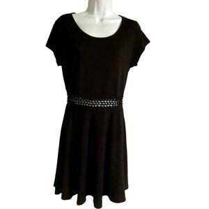 Love Fire Black Short Sleeve Dress Eyelet Waist Cutout Detail Junior's Large