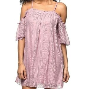 Love, Fire Blush Pink Cold Shoulder Lace Mini Dress - Size Large
