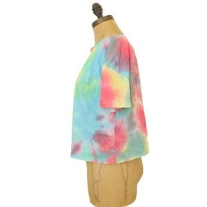Love Fire Cropped Top Size XL Tie Dye Rolled Hem Short Sleeve Watercolor NWT B12
