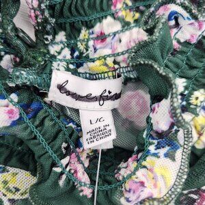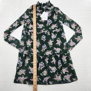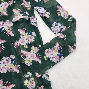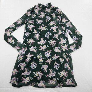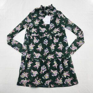 Love Fire Girls Size Large Dark Green Floral Mesh Overlay Dress