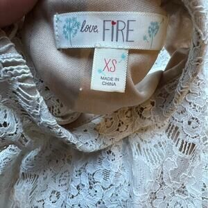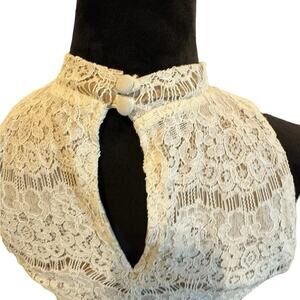 Love Fire Ivory Lace Halter Top Women’s Size XS Sleeveless Keyhole Scallop Hem