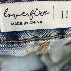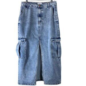 Love Fire Jean Skirt Size 11 Front Slit Pockets Blue Denim Midi Maxi Womens