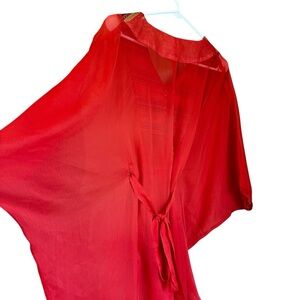 Love, Fire Orange Sheer Embroidered Caftan M