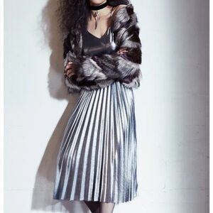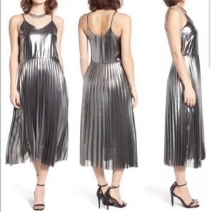 Love Fire Pewter Silver Pleated Foil Spaghetti Strap Midi Dress Size Small