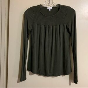 Love, Fire Smocked Olive Army Green Long Sleeve Top Blouse Tee. Size XS