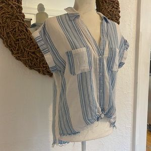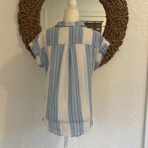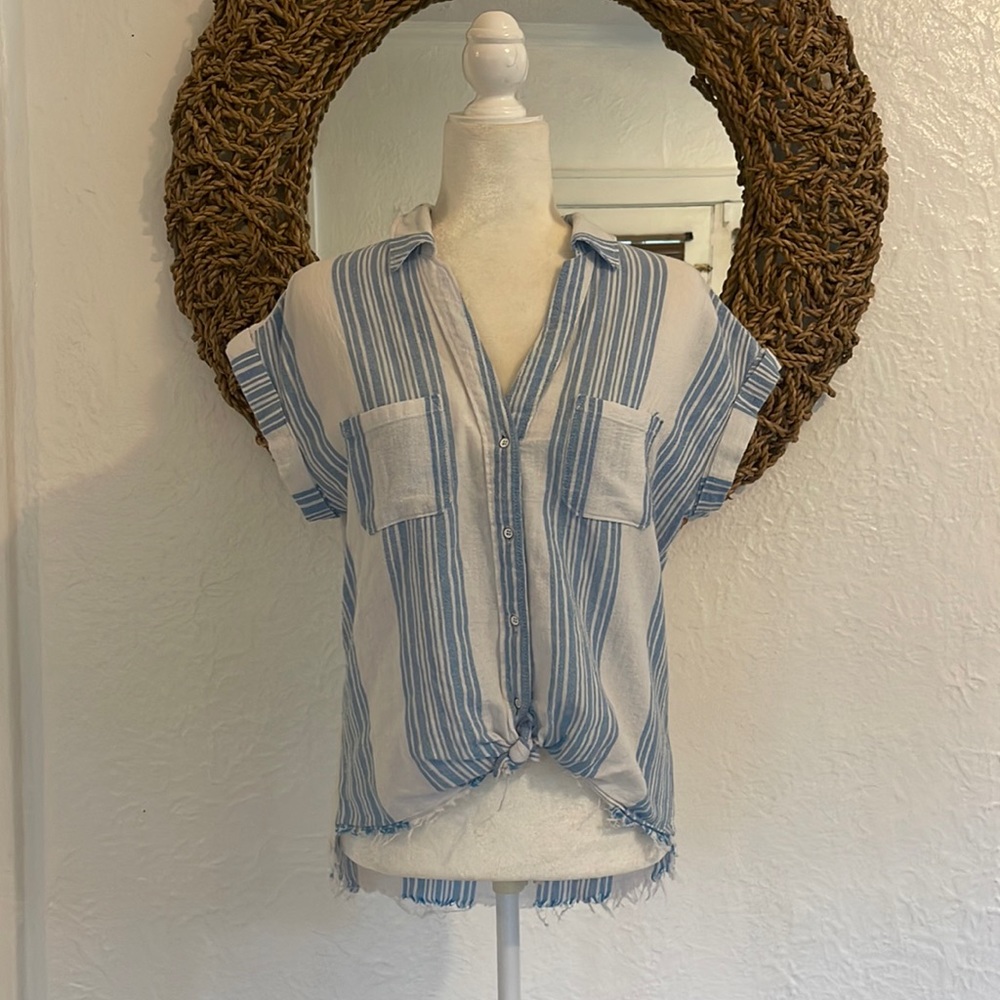 Cut off style top, linen/ towel like fabric. Very comfortable and cute. No stains. Closet clean out.