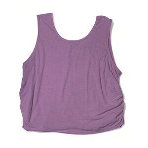 Love, Fire Trendy Plus Size Side Rushed Drawstring Tank in African Violet, size 3X. Crafted from a soft blend of polyester, rayon, and spandex for ultimate comfort and style.