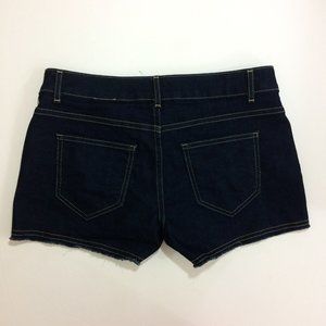 You are buying: Pre-owned Love Fire Womens Junior Jean Denim Shorts Raw Hem Booty Dark Wash Size 9
