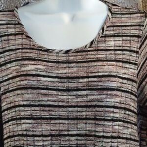 Love Fire size small striped black white gray muted Berry long sleeved, could be used as a dress or tunic with tights, free-flowing, lightweight, easy to wear, machine washable, excellent condition