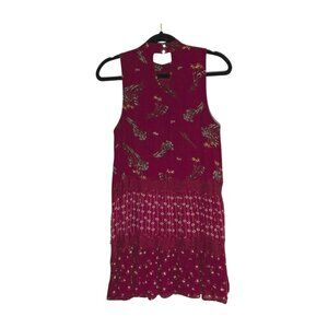 Love Fire Women's Sleeveless Tiered Mini Dress High Neck Red/Burgundy Print Size Small