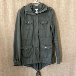 Love Fire green women’s size S/P hooded utility Jacket, in like new condition without condition, no wear shown, all buttons and zipper work well