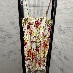 Love Floral Smocked Midi Sundress 3X Plus Boho Rayon Strappy Handkerchief Hem