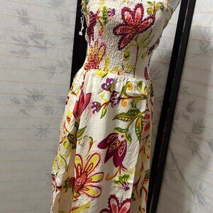 Brighten your warm-weather wardrobe with this Love brand plus-size sundress in size 3X. Featuring a bold tropical floral print, a fully smocked stretch bodice, and adjustable strappy shoulders, this dress is designed for comfort and flattering curve-hugging fit. Made from 100% lightweight rayon with a breezy handkerchief hem and midi length, it’s perfect for summer vacations, festivals, brunch, or casual weddings. Brand New With Tags (NWT).