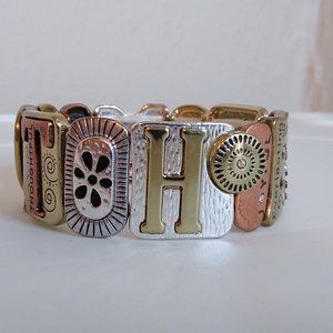 Metal Stretch Bracelet Gift. Has Different Kind Words For Your Mother Etched Into The Pieces. Measurements Are In The Pictures And Its Stretches To Fit Larger Sizes. No Tags But Very Good Condition.
