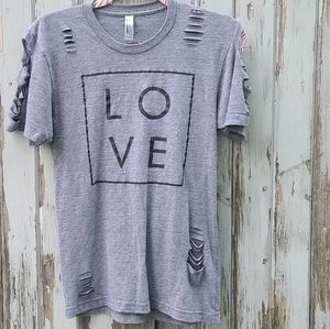 Upcycled Love Graphic Print Destroyed Tee Slashed Tshirt