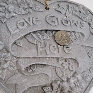 "Love Grows Here" Floral Heart Shaped Plaque HEAVY