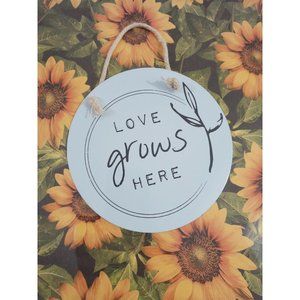 Love Grows Here Metal Home Decor Sign Garden Kitchen Spring Summer Cotton Cord