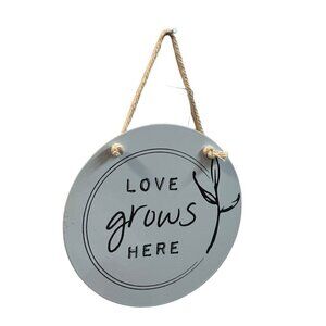 This round hanging sign with "Love Grows Here" text offers a charming farmhouse aesthetic. Lightweight and compact, it's suited for cozy home or garden spaces.