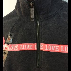 Gray collared pullover sweater. NWT. Pink & white LOVE stripe