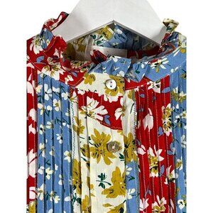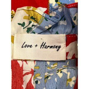Love + Harmony Tunic Babydoll Mini Dress Women's Size S Floral Pintuck Button Front Ruffle Neckline S/S