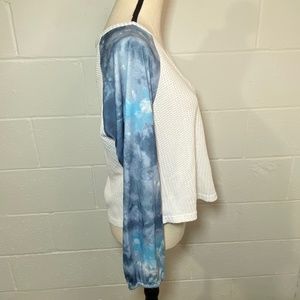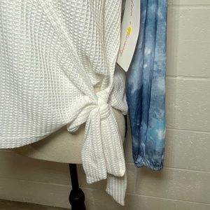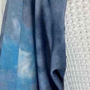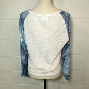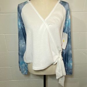 Love + Harmony White Waffle Pattern & Blue Tie Dyed Long Sleeve Side Tie Blouse