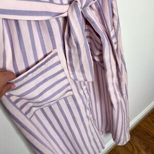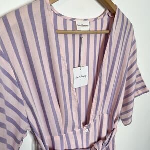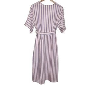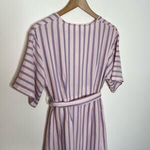 Love + Harmony Women's Midi Dress Size Medium Pink Purple Striped Deep V Neck