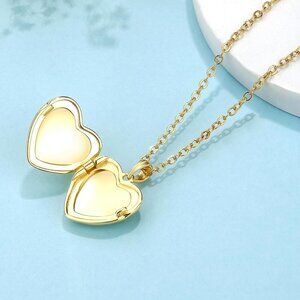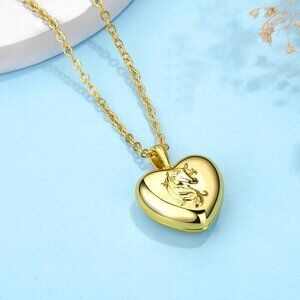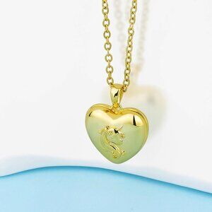 Love Heart Unicorn Locket Necklace Brass 45cm Gift for Her Romantic Jewelry