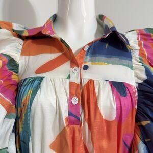 Love Highlight Women’s M mini dress with a flare cut for a feminine, playful silhouette. Features butterfly sleeves and a ruffle/flounced hem for added movement and charm. Waist tie allows for a comfortable, flattering fit. Vivid colors make this dress perfect for casual outings or social gatherings.